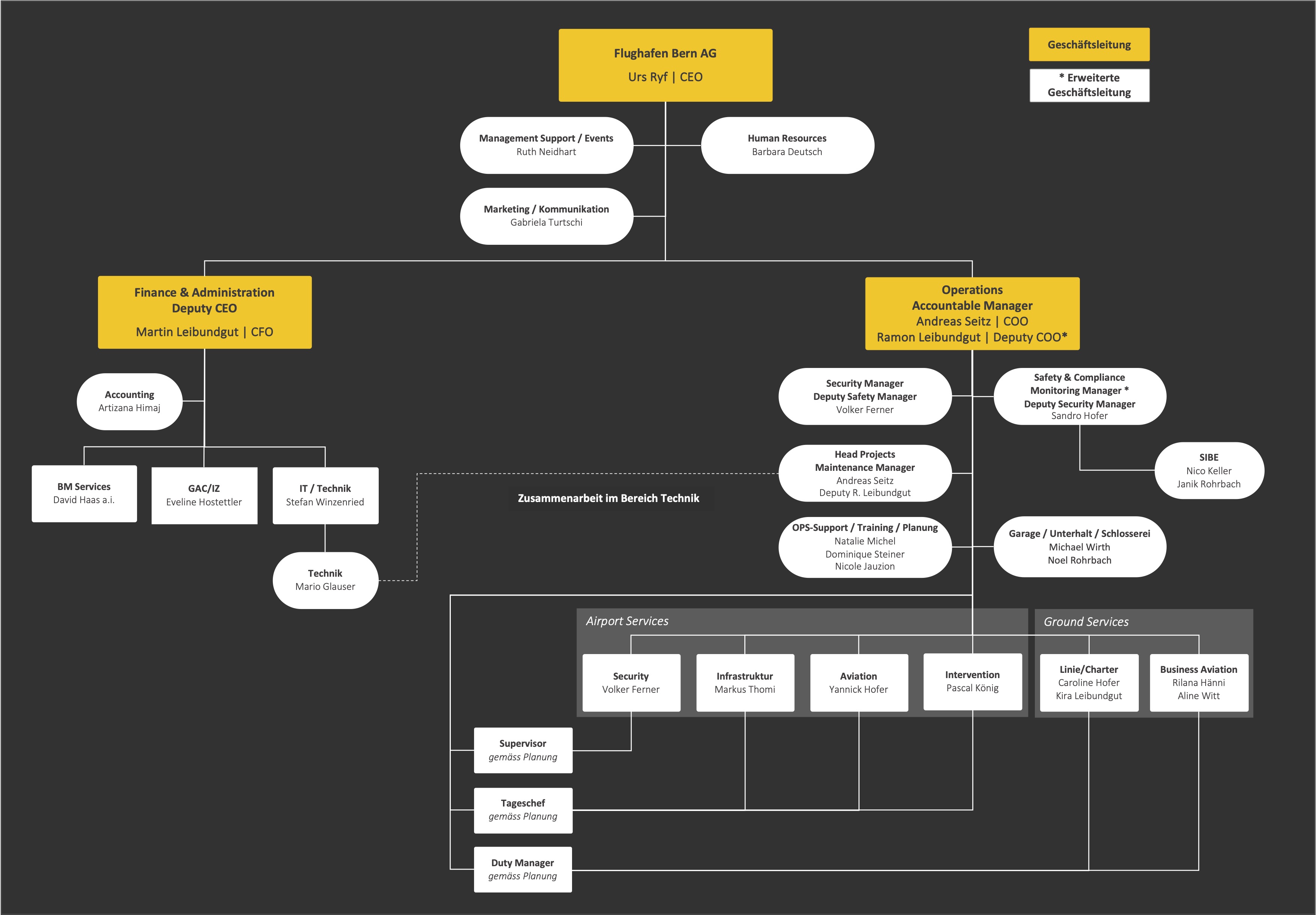 Lernen Sie die Geschäftsleitung und den Verwaltungsrat der Flughafen Bern AG kennen.